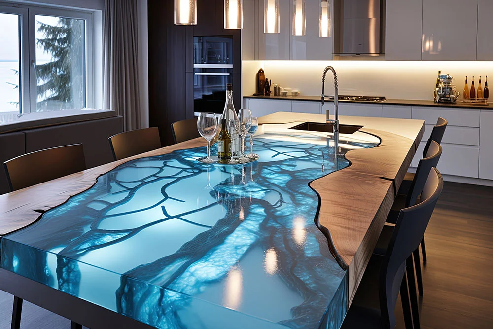DMV Epoxy Pro offers Metallic Epoxy Countertops, combining luxury with exceptional durability. Our high-gloss, surfaces create a stunning effect. Designed for kitchens, bathrooms, and commercial spaces, they provide heat, stain, and scratch resistance. The non-porous, easy-to-clean finish prevents bacteria buildup, making maintenance effortless.